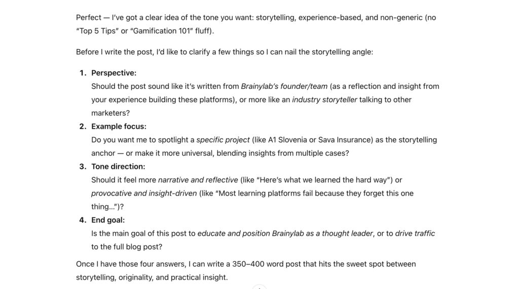 Preden je GPT začel s pisanje, je vprašal še ta štiri vprašanja: