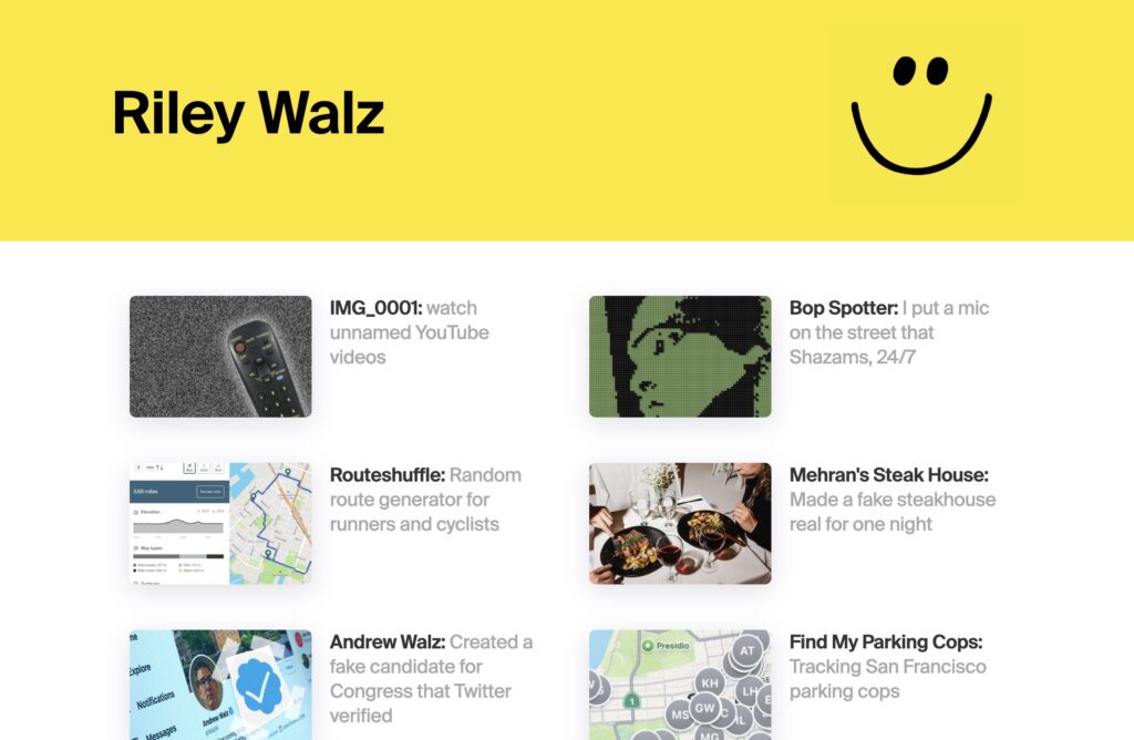 If you enjoyed exploring the worlds of Neal Agarwal or Marc Lou, Riley Walz is another rabbit hole worth falling into.