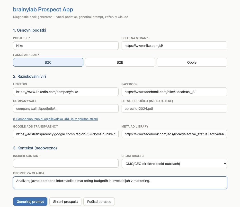 So I built the brainylab Prospect App with Claude Code. Hosted locally. Not a product, just an internal tool our team feeds every time we take a new call.