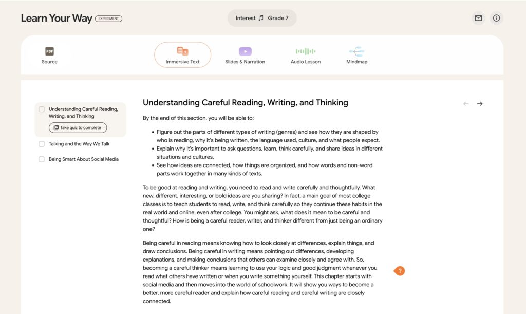 Google’s Learn Your Way takes the most rigid piece of the education system and breaks it open. It reads the original chapter, keeps it as the source of truth, and rebuilds it around the student.